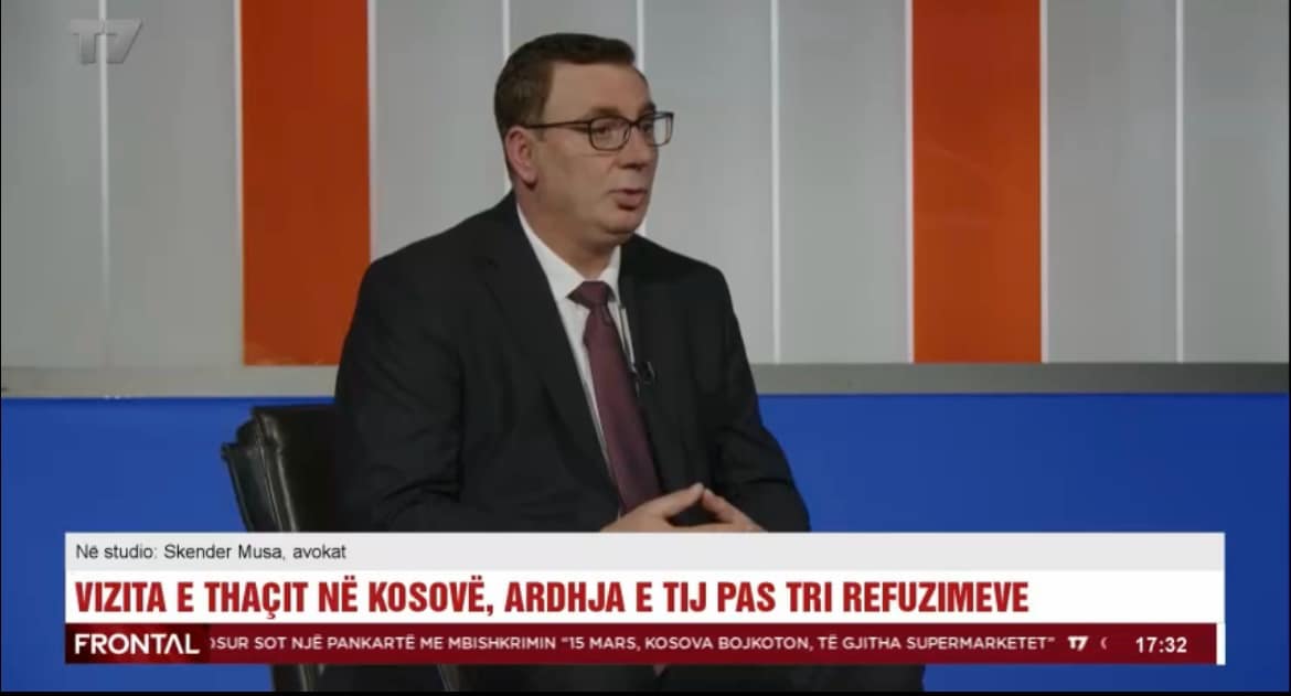 Avokati Skënder Musa në emisionin “FRONTAL” të T7 ka komentuar forcat e EULEX’it gjatë vizitës së ish presidentit Thaçi në QKUK, ku po trajtohet babai i tij. “Ligji e parasheh që masat të jenë strikte...