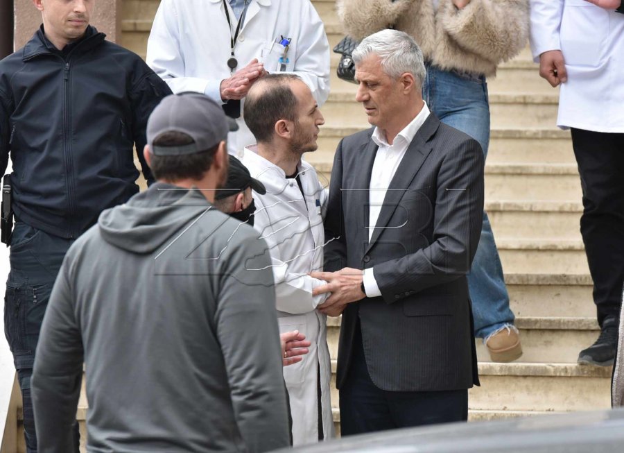 Ish-presidenti Hashim Thaçi e ka lënë Qendrën Klinike Universitare të Kosovës, ku ishte për vizitë tek babai i tij me gjendje të rënduar shëndetësore. Në dalje, afër Thaçit ishte doktori Adriatik Berisha....