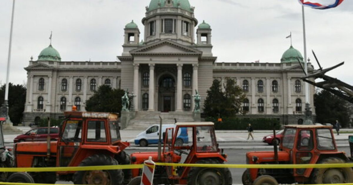 Dhjetëra traktorë janë parkuar përpara parkut “Pionisrski” në Beograd, edhe pse nuk kanë të drejtë. Policia nuk ka bërë asgjë për t’i ndaluar. Shumica e traktorëve nuk kanë targa ose ato u janë fshehur....