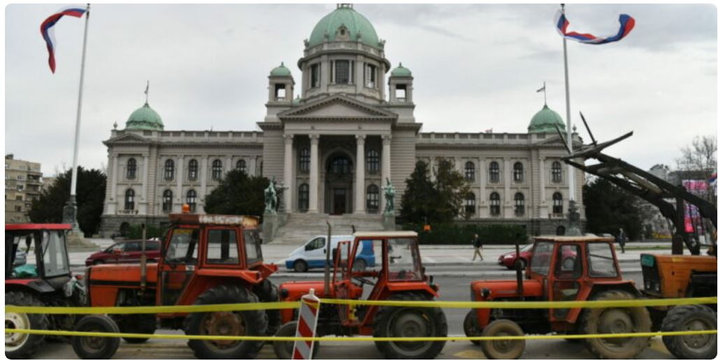 Dhjetëra traktorë janë parkuar përpara parkut “Pionisrski” në Beograd, edhe pse nuk kanë të drejtë. Policia nuk ka bërë asgjë për t’i ndaluar. Shumica e traktorëve nuk kanë targa ose ato u janë fshehur....