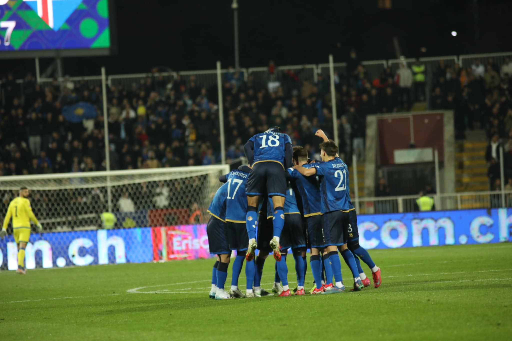 Kanë kaluar 10 minuta lojë në stadiumin “Fadil Vokrri” që është i mbushur plot në përkrahje të Kosovës. Si Kosova ashtu edhe Islanda janë treguar të kujdesshme në minutat e para të ndeshjes.