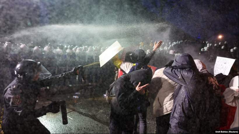 Policia turke përdori ujin me presion dhe gazin lotsjellës për të shpërndarë turmat e protestuesve të opozitës që mbushën rrugët e Ankarasë këtë të diel për të kërkuar lirimin e kryebashkiakut të Stambollit...