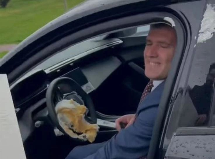 Kryetari i Zyrës së Rregullatorit për Energji, Ymer Fejzullahu, është gjuajtur me një tortë ‘dhuratë’, nga aktivistët e nismës “Asnjëcentmëshumë”, mesditën e sotme në një parking. Ishte aktivisti Dibran...