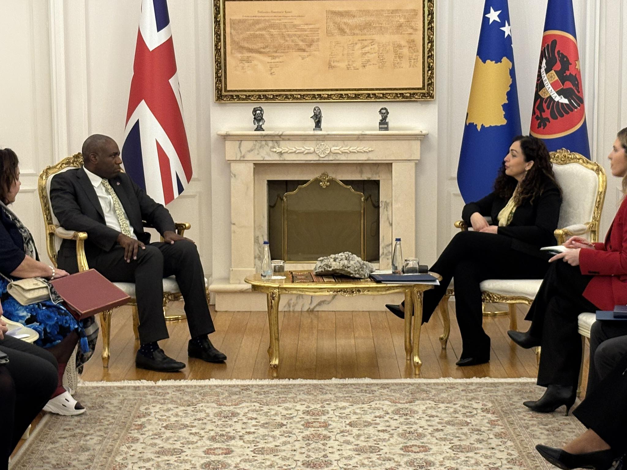 Presidentja e Kosovës, Vjosa Osmani, priti në takim sekretarin e jashtëm të Mbretërisë së Bashkuar, David Lammy. Takimi Osmani – Lammy po mbahet në presidencë dhe u njoftua se pas takimit do të ketë konferencë për media.