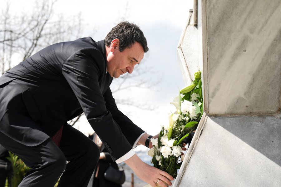 Kryeministri në detyrë, Albin Kurti, në mëngjesin e sotëm, bëri homazhe në Kompleksin Memorial "Dëshmorët e Koshares", në 26-vjetorin e betejës së lavdishme të Koshares. "Ne vijmë këtu te varret e dëshmorëve...