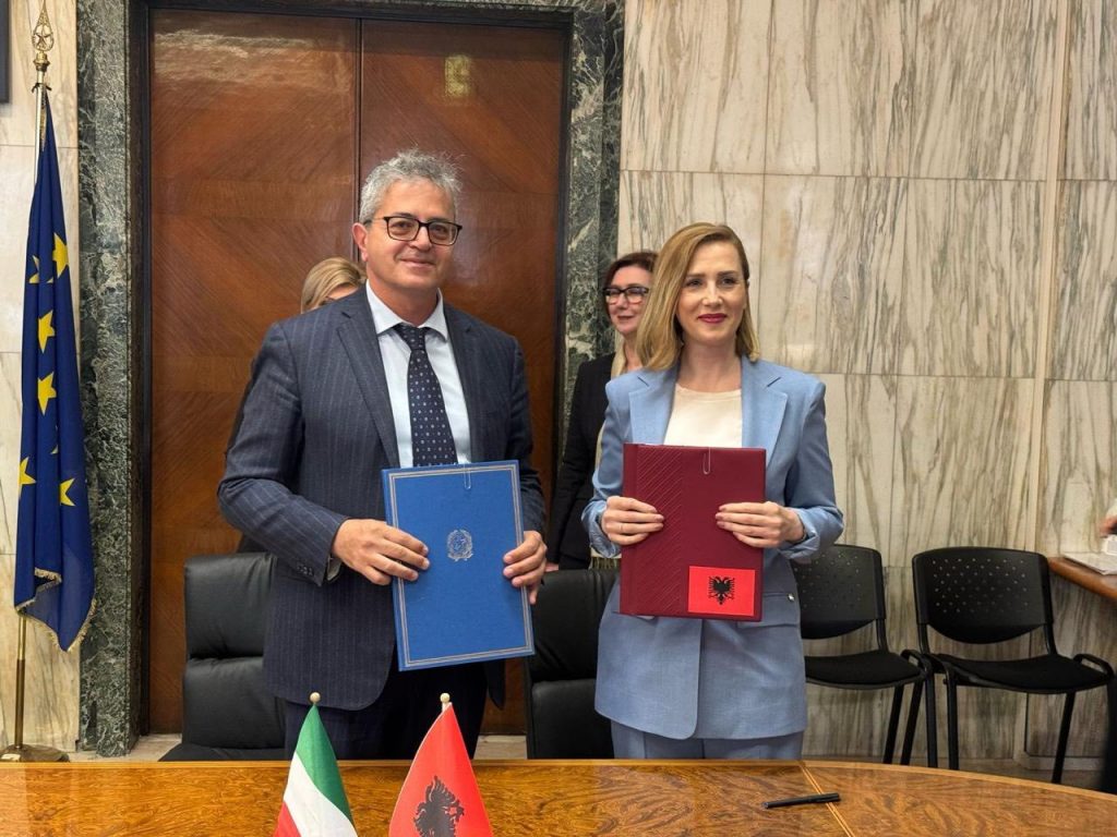 Zëvendësministrja e Ekonomisë, Kulturës dhe Inovacionit, Olta Manjani si dhe ministrja e Punës dhe Politikave Sociale të Italisë, Marina Calderone nënshkruan dje në Romë marrëveshjen administrative për...