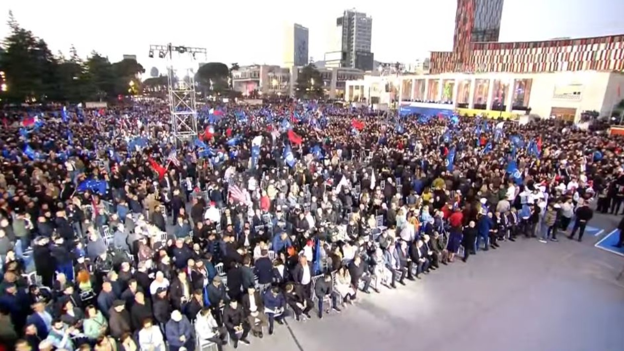 PD “ndez motorët” për zgjedhjet e 11 majit, pamjet e mitingut në sheshin “Nënë Tereza”