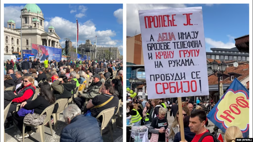Kundërshtarët dhe mbështetësit e presidentit të Serbisë, Aleksandar Vuçiq, u mblodhën në vende të ndryshme më 12 prill për të protestuar, në një kohë kur tensionet janë të larta, pas muajsh protestash...