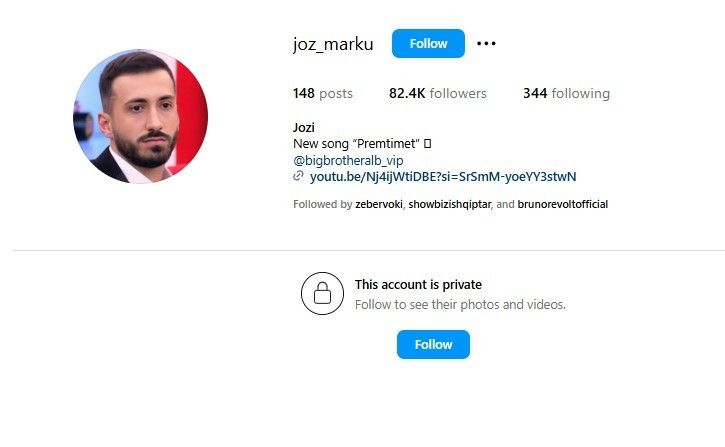 Joz Markut i është kthyer faqja zyrtare e tij në Instagram para pak minutave. Faqe kjo e cila sipas aludimeve në rrjet iu mbyll nga ndjekësit e Gjestit, si shkak i incidentit që ka ndodhur në Big Brother....