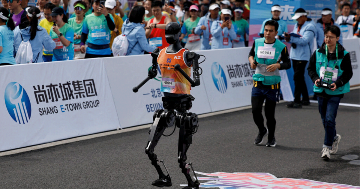 Njëzet e një robotë humanoidë, të projektuar nga prodhuesit kinezë, vrapuan së bashku me mijëra njerëz në një distancë prej 21 km që përfshinte pjerrësi, kthesa dhe sipërfaqe të pabarabarta. Disa robotë...