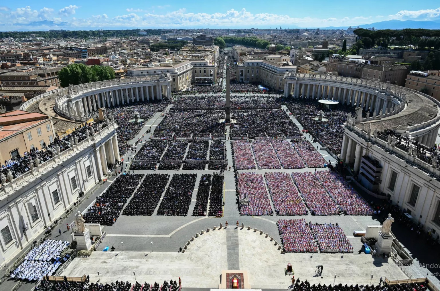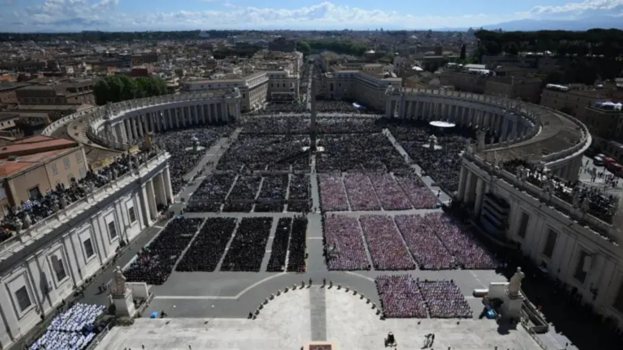 E mbajtur jashtë në Sheshin e Shën Pjetrit, mesha për udhëheqësin e ndjerë të Kishës Katolike u ndoq nga dhjetëra mijëra njerëz dhe më shumë se 100 delegacione zyrtare, duke përfshirë krerët e shteteve...