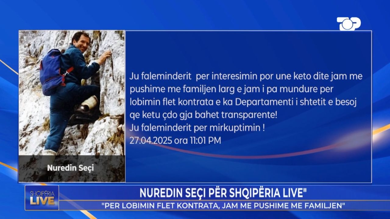Nuredin Seçi, njeriu garant për pagesën prej 6 milionë dollarë për kompaninë lobuese për heqjen e non gratës së kreut të PD, Sali Berisha ka reaguar në emisionin “Shqipëria Live” në Top Channel. Ai është...