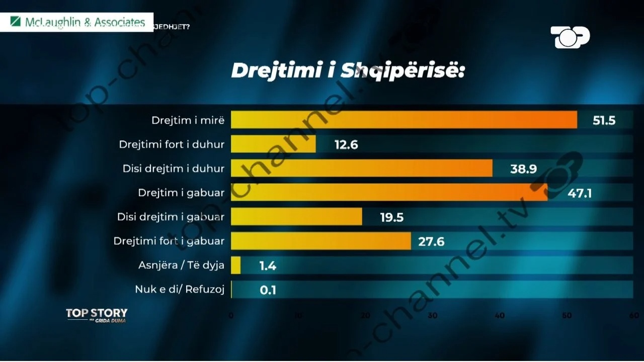 Në kampionimin e fundit nga kompania e njohur amerikane ”McLaughlin and Asociated” me Top Channel, janë zbuluar dhe cilat janë problematikat më të mëdha të shqiptarëve, ku vendin e parë e mban ekonomia....