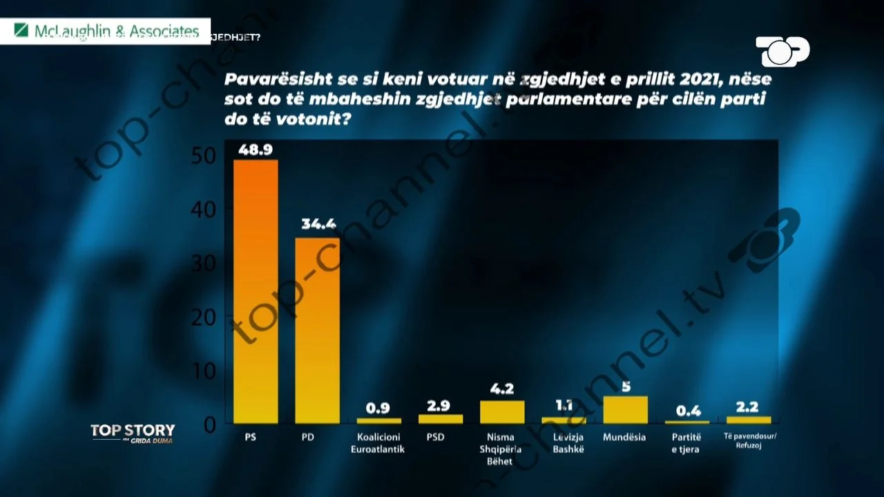 Sonte në ”Top Story” është publikuar sondazhi i dytë i realizuar nga kompania e njohur amerikane ”McLaughlin and Asociated” me Top Channel. Pyetur se si do të votojnë shqiptarët, ja si janë përgjigjur!...