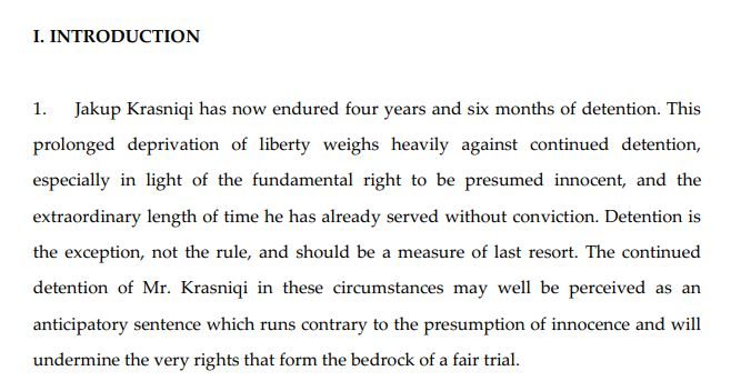Mbrojtja e Jakup Krasniqit ka shprehur shqetësim lidhur me vazhdimin e paraburgimit të tij, duke paralajmëruar se kjo mund të shihet si një dënim preliminar që bie ndesh me prezumimin e pafajësisë. Avokatja...