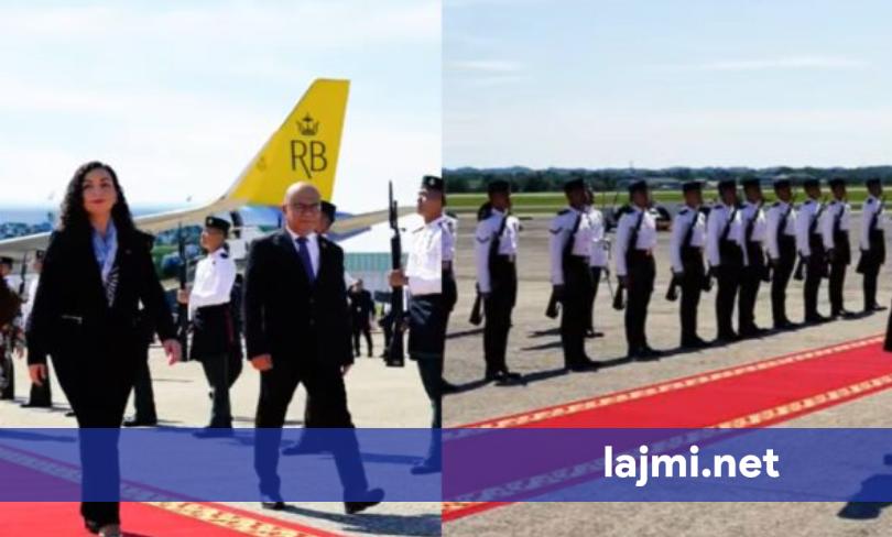 Presidentja Vjosa Osmani është pritur me “nderimet më të larta shtetërore” në aeroportin Brunei Darussalam. Ajo tha se u ftua të shkonte atje nga Sulltani. “Pritja me nderimet më të larta shtetërore ushtarake...