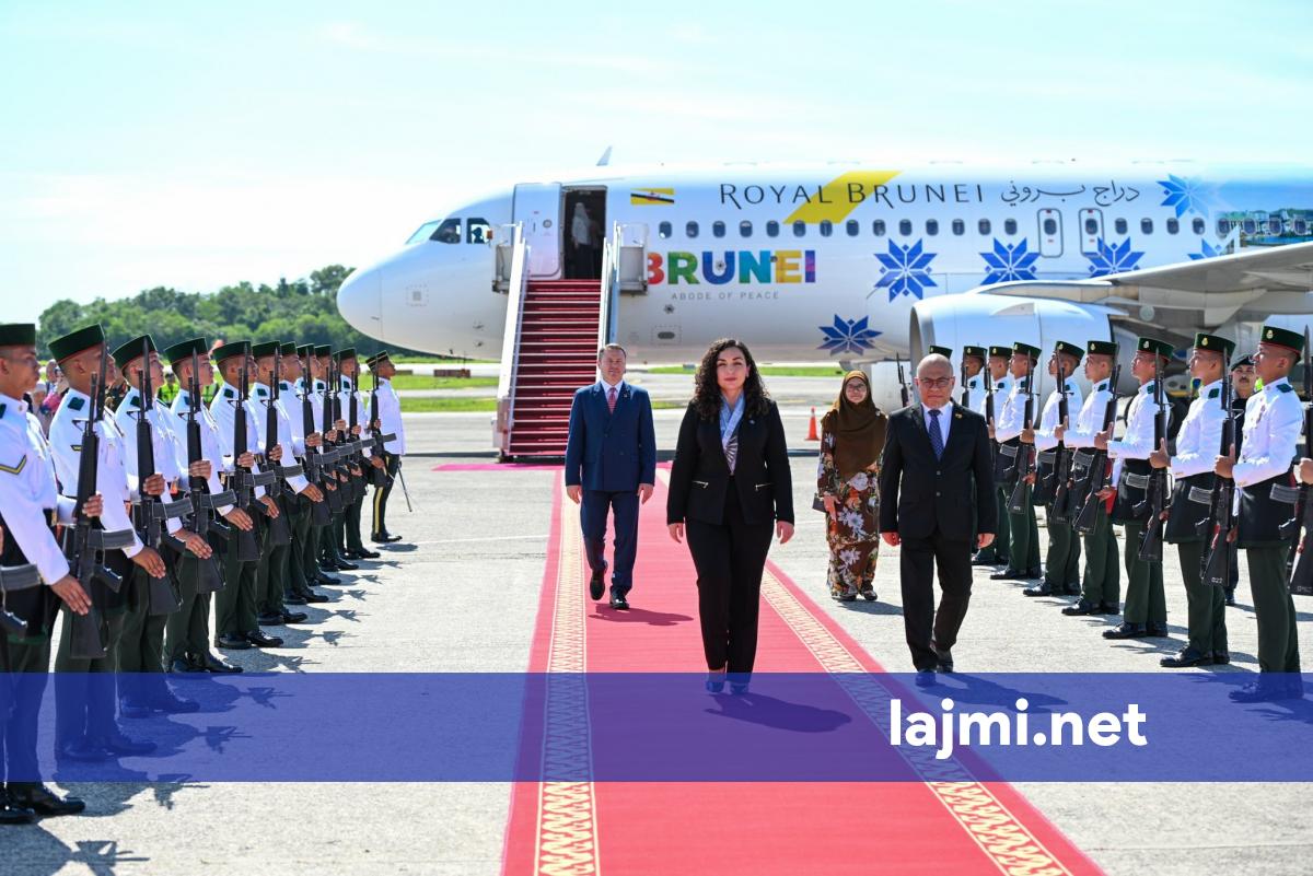 Presidentja Vjosa Osmani është pritur me “nderimet më të larta shtetërore” në aeroportin Brunei Darussalam. Ajo tha se u ftua të shkonte atje nga Sulltani. “Pritja me nderimet më të larta shtetërore ushtarake...