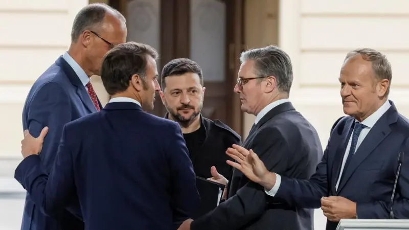 Kryeministri britanik, Keir Starmer, presidenti francez Emmanuel Macron dhe kancelari gjerman Friedrich Merz gjatë vizitës në Kiev kanë përsëritur thirrjet që të ketë armëpushim 30-ditor në mënyrë që t’i...