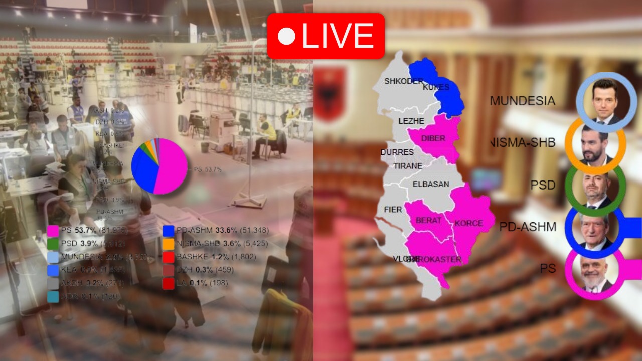 Deri më tani janë numëruar 22 kuti votimi nga 5,225. Në rang vendi PS-së udhëheq me 2,597 vota ndërsa PD-Aleanca për Shqipërinë Madhështore ka 1308 vota. Nisma Shqipëria Bëhet ka grumbulluar 116 vota;...