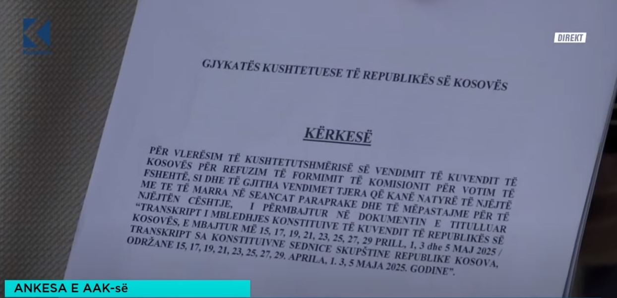 AAK ka njoftuar se deputetët e saj sot në ora 11:00 do ta dorëzojnë në Kushtetuese refuzimin e formimit të komisionit tëfshehtë dhe vendimet tjera në vazhdimet e seancës konstituive. “Më 12 maj 2025, në...