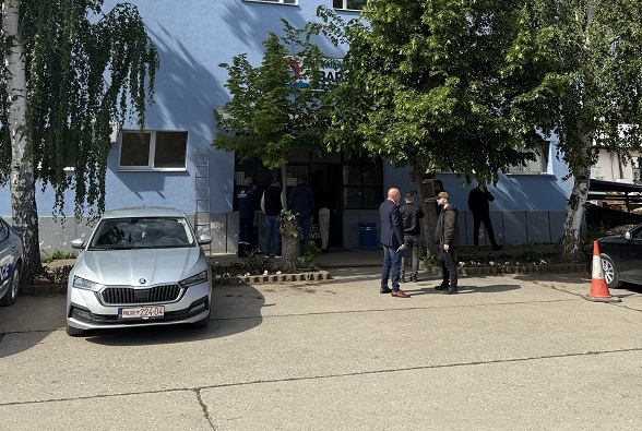 Pjesëtarët e Policisë po asistojnë teksa po inspektohen zyrat e ndërmarrjes ilegale për shërbime komunale “Vodovod Ibar” në Mitrovicën e Veriut, e cila funksionon sipas sistemit serb. Aktualisht para objektit...