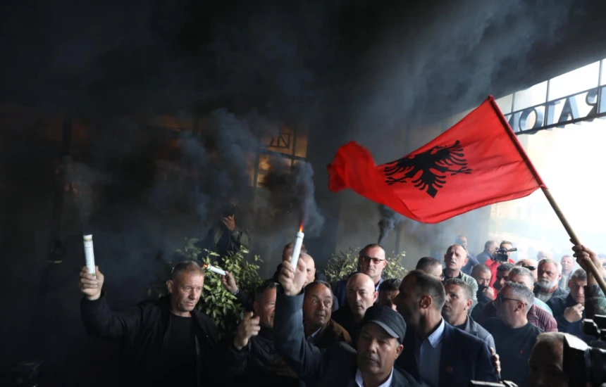 Anëtarët e OVL-UÇK-së kanë hedhur tym të zi pranë hotelit ku po mban konferencë kryetarja e Dhomave të Specializuara, Ekaterina Trendafilova. Veteranët u dëgjuan teksa thërrisnin “UÇK, UÇK”. Ndryshe, veteranët...