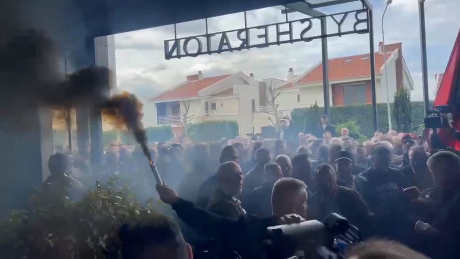 Anëtarët e OVL-UÇK-së kanë hedhur tym të zi pranë hotelit ku po mban konferencë kryetarja e Dhomave të Specializuara, Ekaterina Trendafilova. Veteranët u dëgjuan teksa thërrisnin “UÇK, UÇK”. Ndryshe, veteranët...
