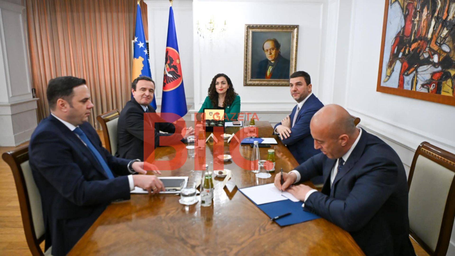 Ka nisur në ora 13:00 takimi i liderëve të partive politike me presidenten Vjosa Osmani, raporton Gazeta Blic. Gazeta Blic ka siguruar foto brenda takimit, ku shihet Kurti, Krasniqi, Abdixhiku e Haradinaj...