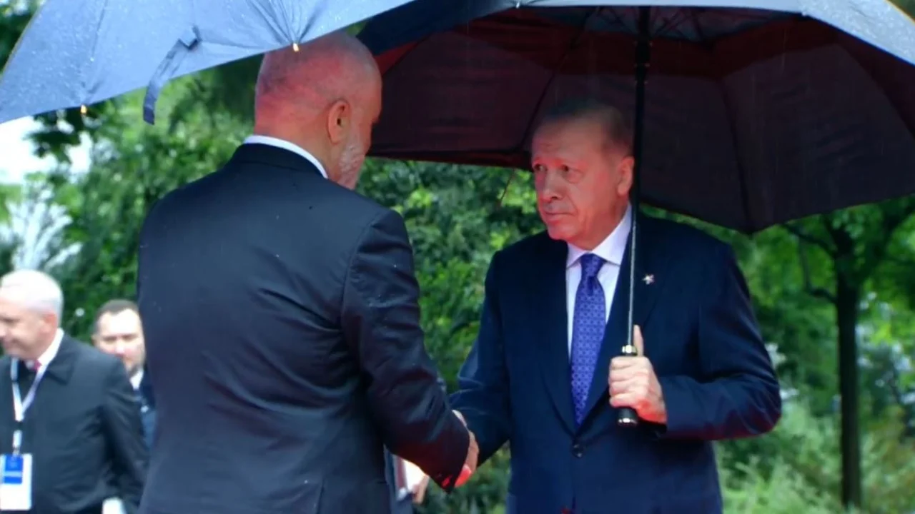 Presidenti Erdogan mbërrin në Samit, pritet nga kryeministri Rama. “Çfarë është ajo që prisnim, presim shumë gjëra me vëllanë tim shqiptar. Në Shqipëri e gjithë bota do të thërrasë zërin e paqes”, ka thënë në turqisht Erdogan.
