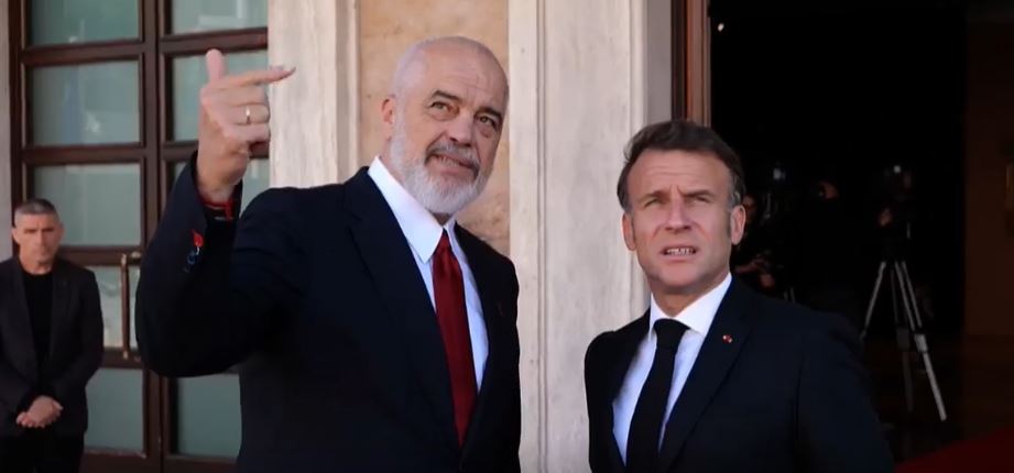 Presidenti francez, Emmanuel Macron ka mbërritur në kryeministrin e Shqipërisë. Atë e priti kryeministri shqiptar, Edi Rama. Të premten ai ishte pjesëmarrës në Samitin e VI të Komunitetit Politik Evropian.