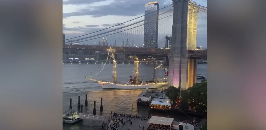 Pamjet e [publikuara në rrjet kanë filmuar momentet kur anija e Marinës Meksikane përplaset me Urën Bruklin. Si pasojë e përplasjes dy persona kanë humbur jetën dhe të paktën 19 të tjerë janë plagosur....