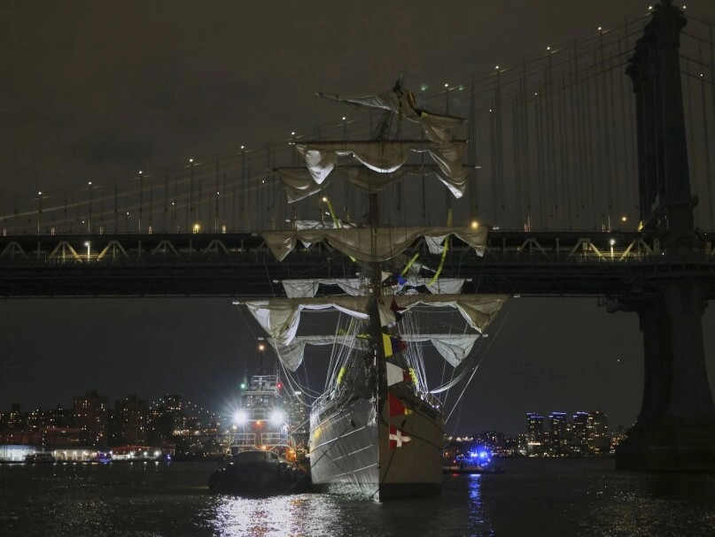 Një anije me vela e marinës meksikane, e stolisur me drita dhe një flamur gjigant, u përplas me urën ikonike të Bruklinit të shtunën në mbrëmje, duke vrarë dy persona dhe plagosur 17 të tjerë, tha kryetari...