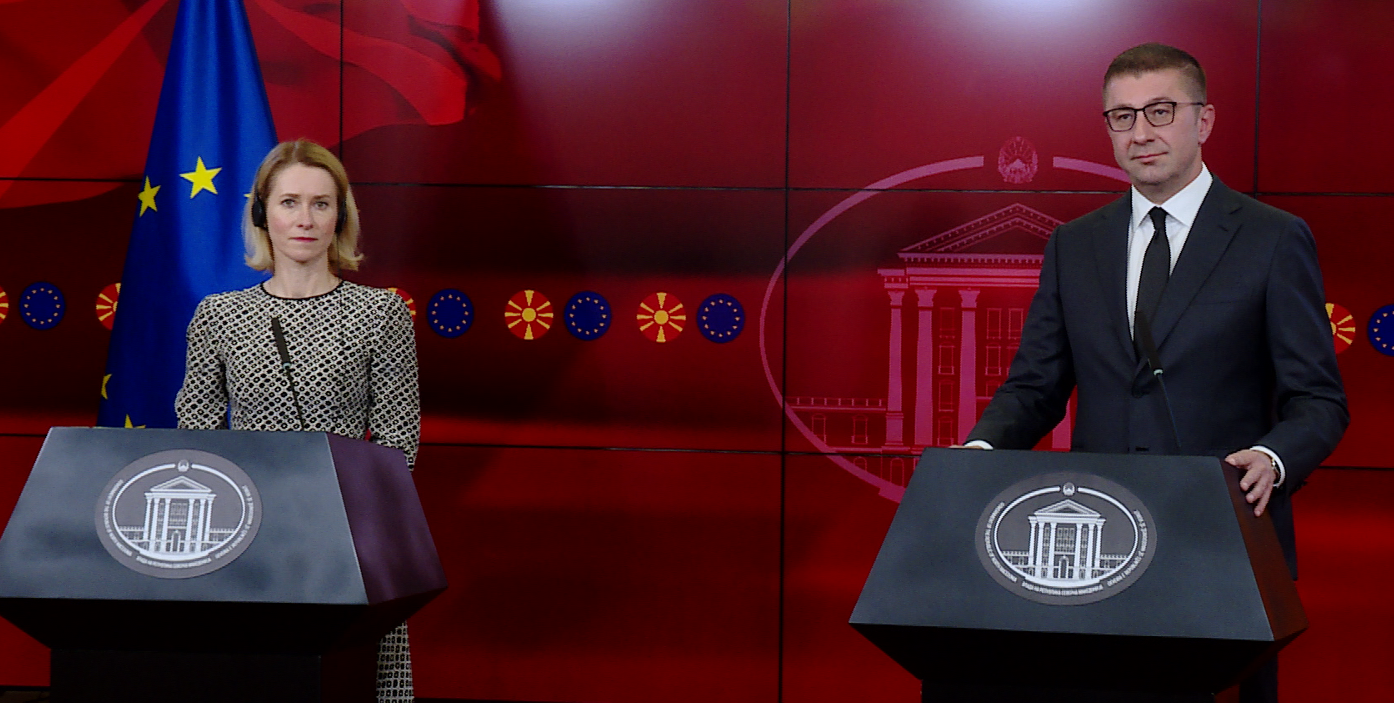 Shefja e diplomacisë së Bashkimit Evropian, Kaja Kallas pas takimit në Shkup me kryeministrin Hrisitjan Mickoski, paralajmëroi se ka mundësi për lëvizje, lidhur me bllokadën e rrugës së integrimit të Maqedonisë...