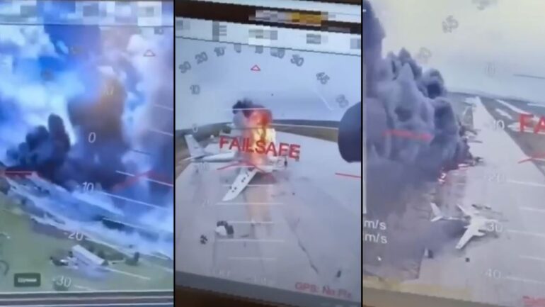 Katër baza ajrore ruse që strehojnë bombarduesit bërthamorë të Putinit janë goditur nga një sulm i jashtëzakonshëm me dronë – ku raportohet se janë shkatërruar të paktën 40 avionë. Burime të sigurisë ukrainase...