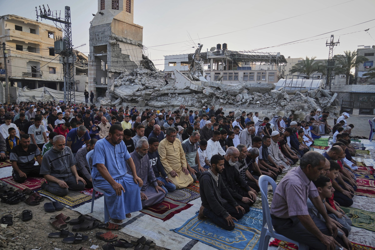 Mes mbetjeve të një xhamie të rrënuar nga bombardimet izraelite, këta besimtarë palestinezë në Khan Junus zhvilluan këtë të premte faljen e Kurban Bajramit. Besimi te Zoti mposhti jo vetëm frikën nga rreziku...