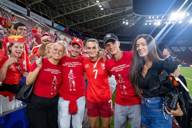 Riola Xhemaili ishte në disponim shumë të mirë pasi shënoi gol për suksesin historik të Zvicrës, të enjten mbrëma. Falë golit të saj, Zvicra për herë të parë do të luajë në çerekfinale të Kampionatit Evropian...