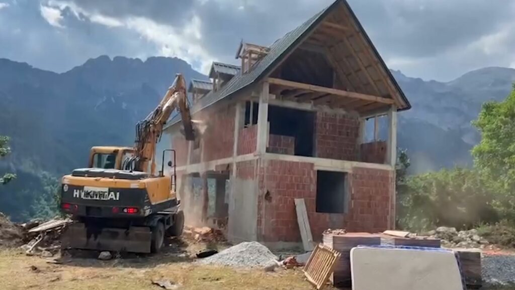 Vijon aksioni për prishjen e ndërtimeve pa leje në zonën e Thethit, ku pasditen e sotme është shembur një ndërtesë 2-katëshe e ndërtuar me betonarme dhe gur. Në videon që ka postuar në rrjetet sociale,...