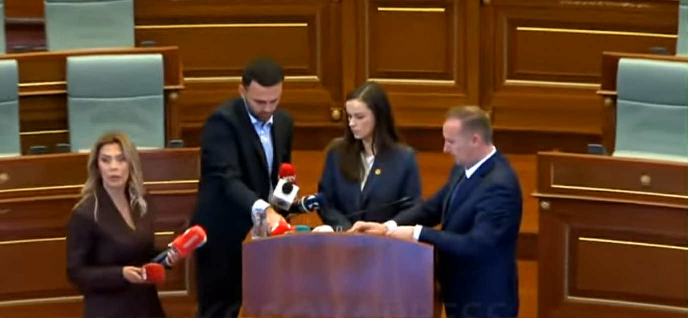 PDK, LDK e AAK e kanë vazhduar seancën edhe pas ndërprerjes nga kryesuesi Avni Deharit pasi dështoi “përpjekja” e 47’të për konstituimin e kuvendit. DEputetët kanë vendosur mikrofonët e mediave në foltore,...