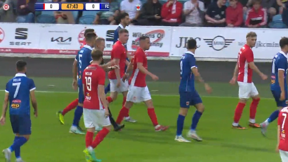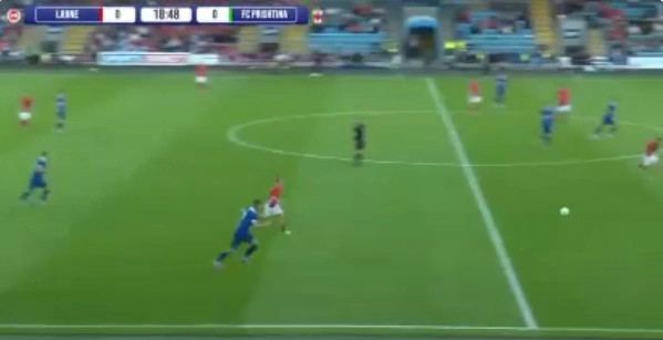 Pas 12 minutash lojë, Prishtina e ka pasur mundësinë më të mirë për të shënuar ndaj Larnes së Irlandës së Veriut. Pas harkimit të Valmir Veliut nga e majta, Rohan Ferguson e priti tentimin me kokë të Blend...
