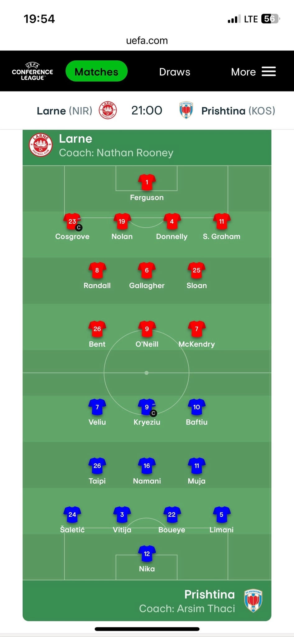 Me pak se një orë ka mbetur kur do të nis sfida mes Larne dhe Prishtinës, duel ky që do të luhet në kuadër të rrethit të dytë kualifikues në Ligën e Konferencës. Skuadra jonë pak ditë më parë u eliminua...