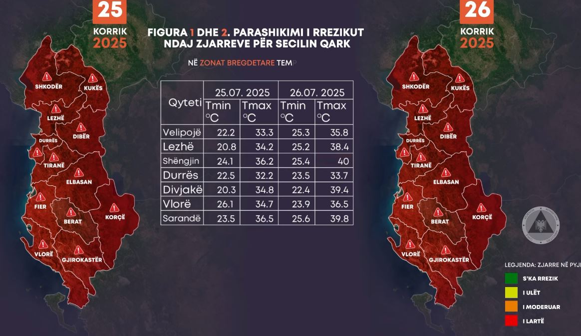 TIRANË- Gjatë 24 orëve të fundit, janë raportuar 34 vatra zjarri, nga të cilat 8 vijojnë të jenë ende aktive dhe 3 janë në monitorim. Situata më problematike është evidentuar në qarqet Shkodër, Lezhë,...