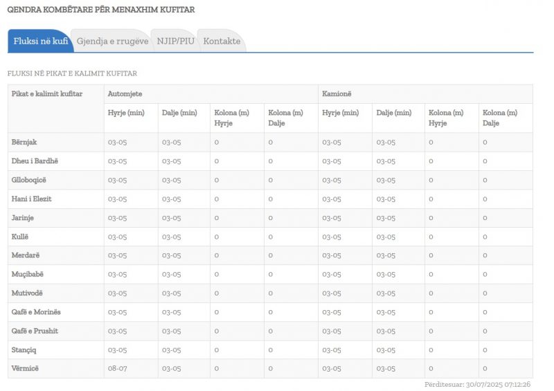 Qendra Kombëtare për Menaxhim Kufitar ka përditësuar të dhënat e fundit.
