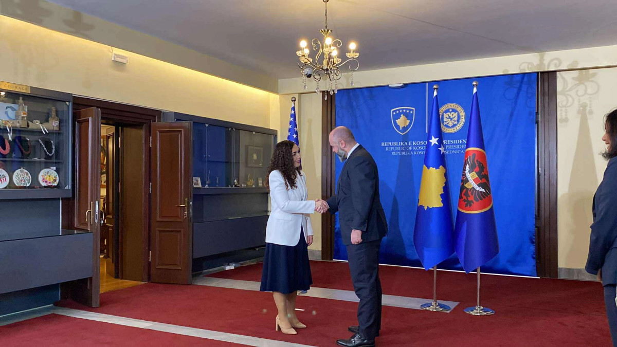 Presidentja e Kosovës, Vjosa Osmani, e ka pritur të shtunën zëvendësndihmës Sekretarin amerikan të Mbrojtjes për Politikat Evropiane dhe ato të NATO-s, David Baker, për një takim në Presidencë. Kjo është...