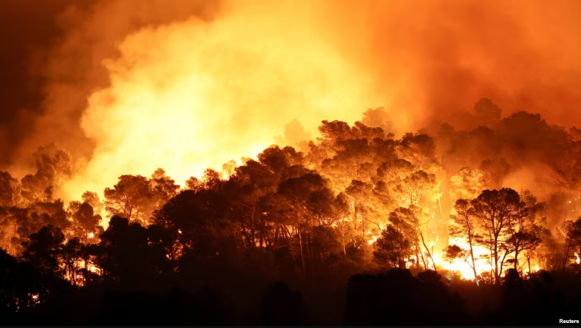 Flakët në Francë po përhapet me shpejtësi në një rajon mesdhetar pranë kufirit me Spanjën. Flakët kanë djeguar një zonë më të madhe se Parisi. Rreth 2,000 zjarrfikës dhe disa avionë bombardues uji luftuan...