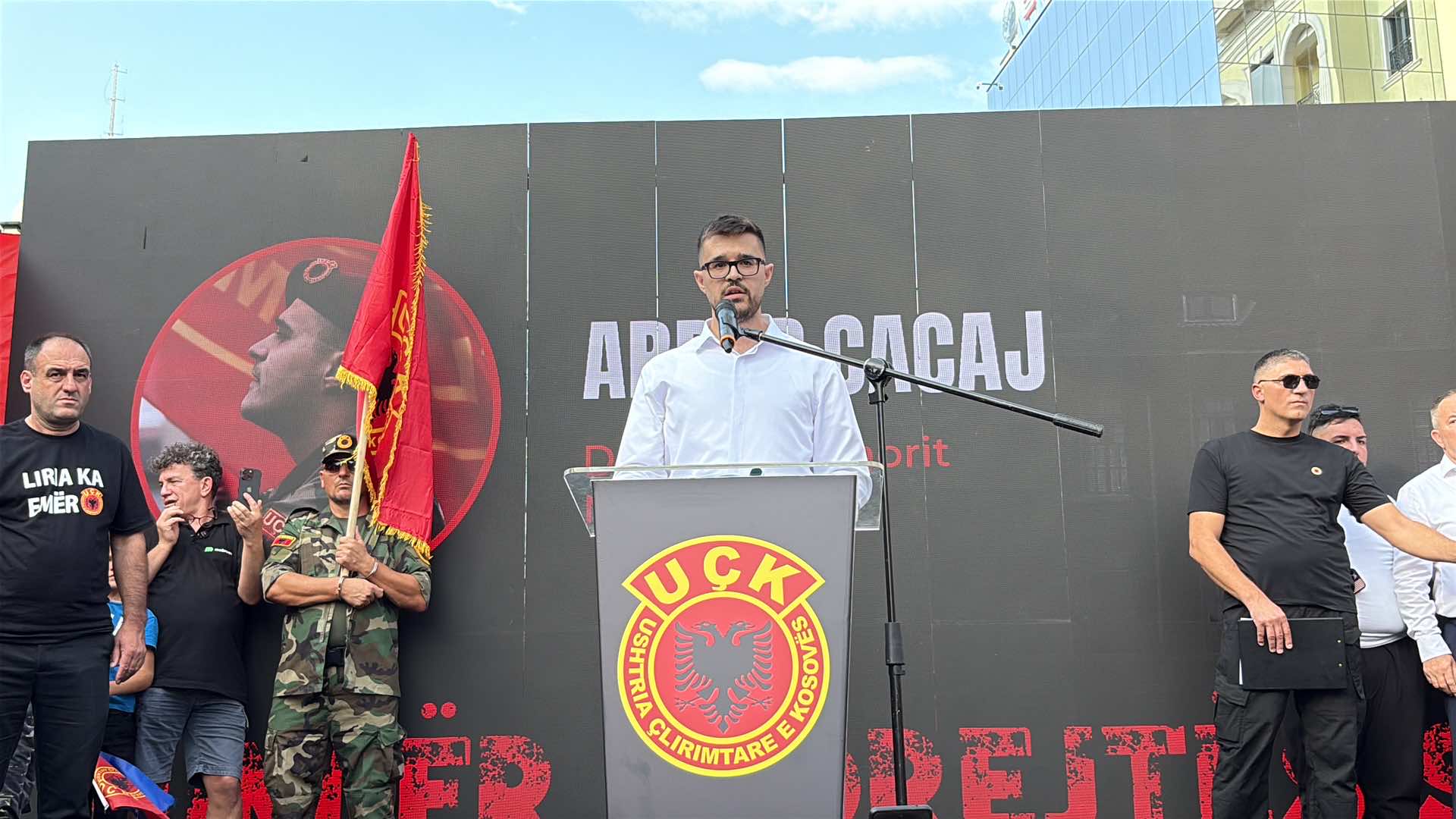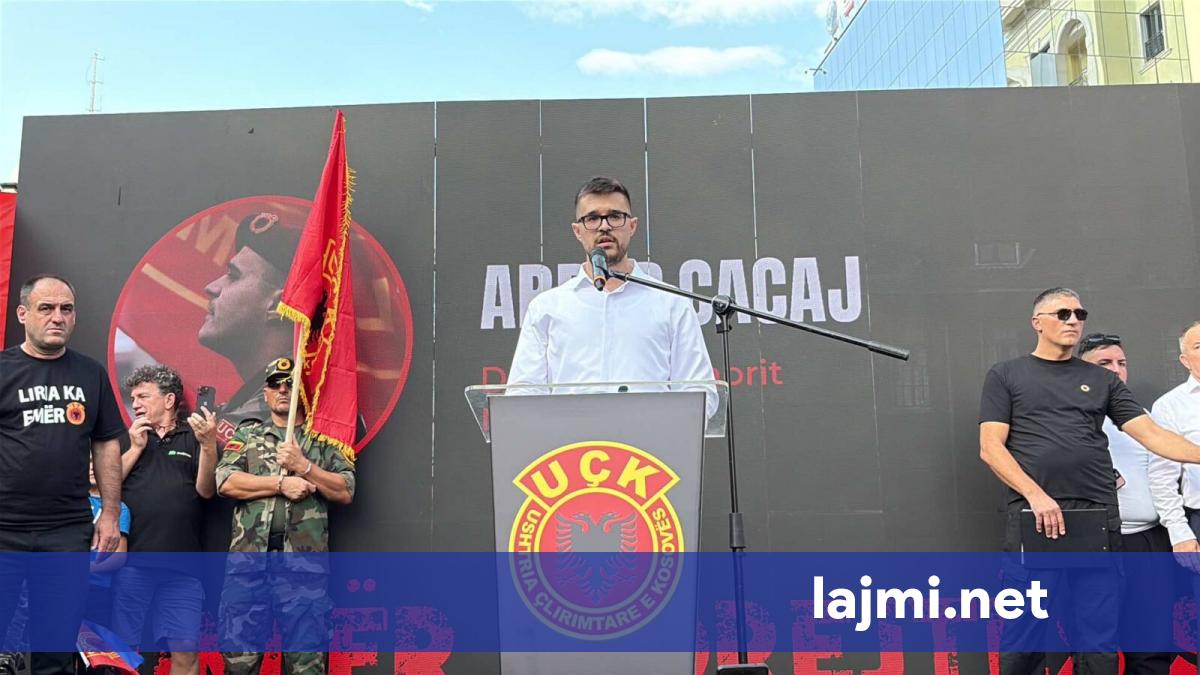 Arbër Cacaj, djali i dëshmorit Nagip Cacaj, ka emocionuar me fjalët në protestë. Ai tha se nëse babai i tij ishte kriminel, atëherë të vijnë t’ia lidhin duar. Cacaj ka thënë se “UÇK-ja nuk është dorëzuar...