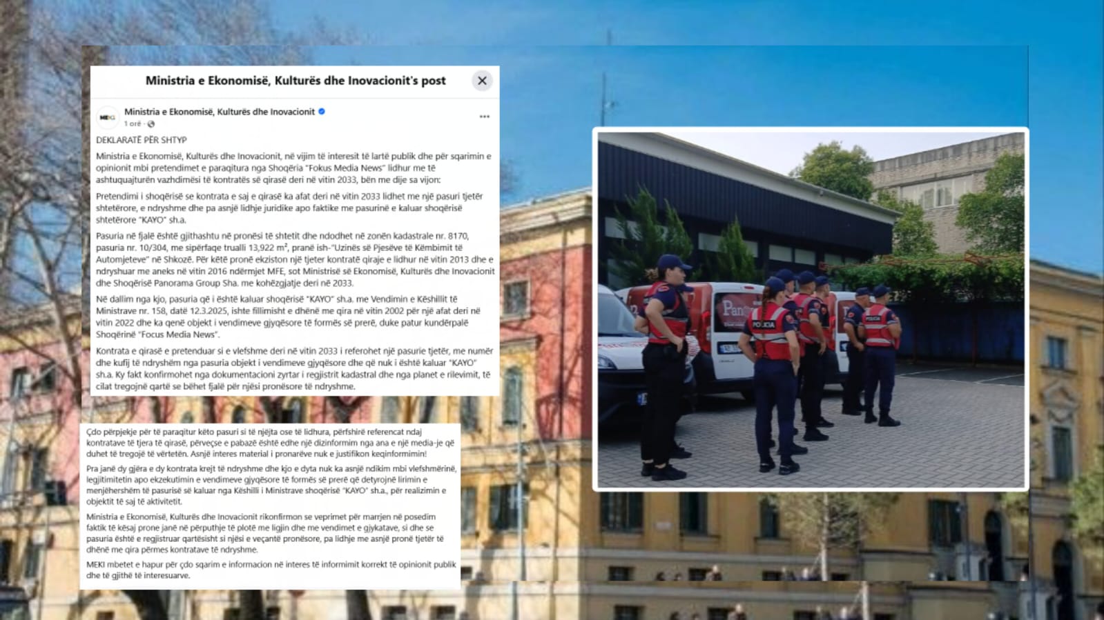 Ministria e Ekonomisë, Kulturës dhe Inovacionit ka reaguar sa i përket ndërhyrjes së policisë së shtetit në ambientet e punës së Focus Group, ku ushtrojnë aktivitetin televizionet News 24, Panorama, BalkanWeb...