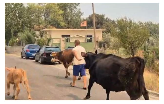 Këto pamje të trishta vijnë nga fshati Nartë i Gramshit, ku banorët largohen nga banesat e tyre për t’i shpëtuar flakëve. Me lot në sy nga banesat që po u digjen, ata marrin me vete edhe lopët e bagëtitë,...