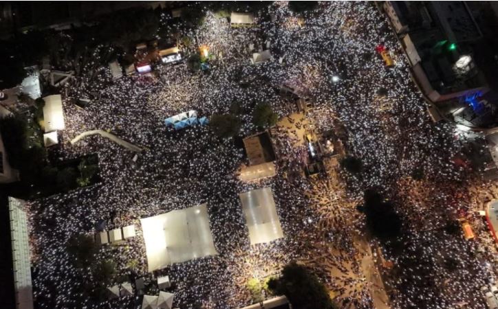 Mijëra qytetarë izraelitë kanë pushtuar sonte sheshin qendror të Tel Avivit, i njohur tashmë si “Sheshi i Pengjeve”, duke bërë që zona të mbushet me afro 500 mijë protestues, sipas vlerësimeve të Forumit...