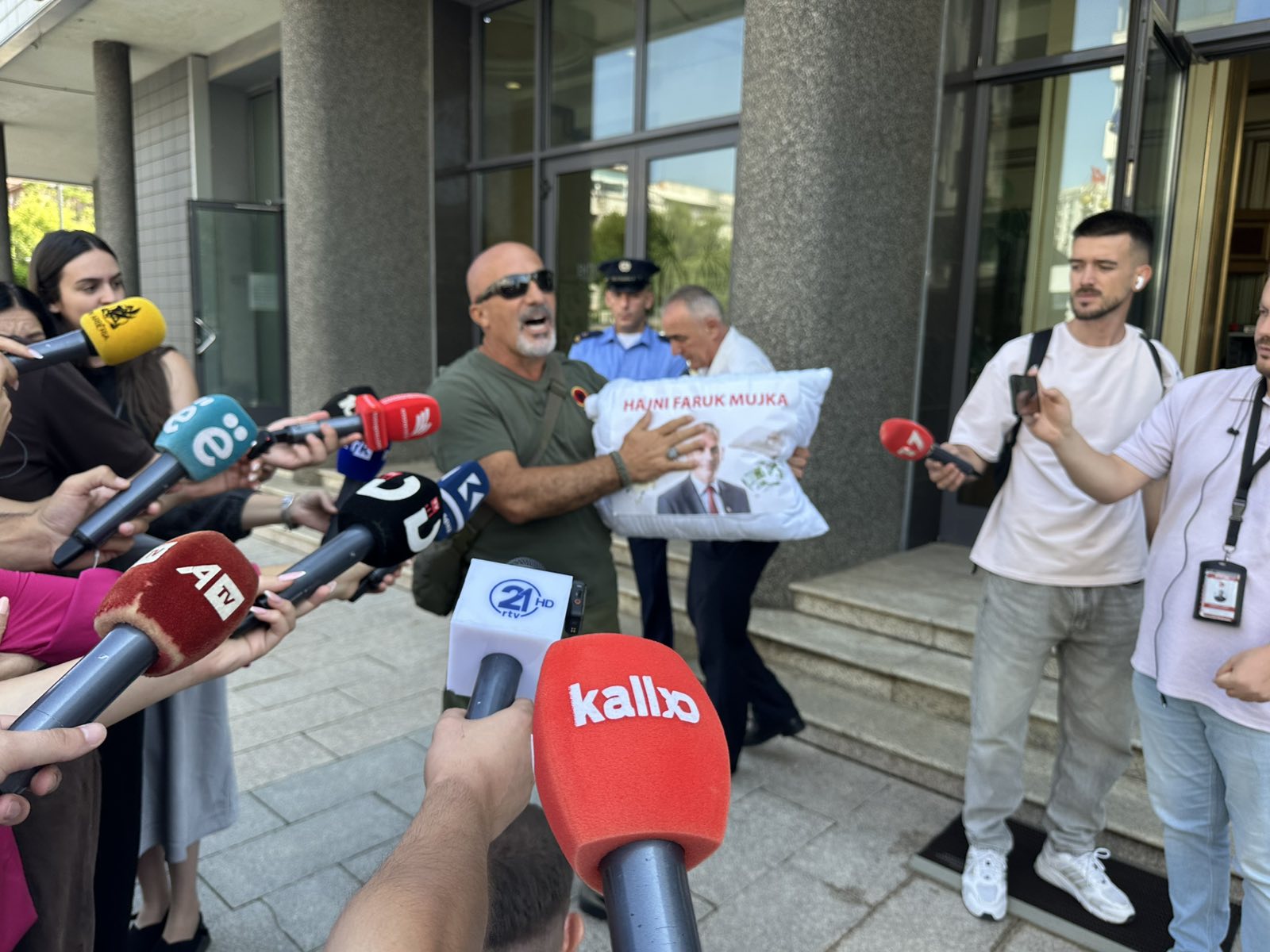 5 Veterani i Ushtrisë Çlirimtare i Kosovës, Agim Pllashniku, ka bërë një aksion simbolik protestues sot para objektit të Kuvendit të Kosovës, me një jastëk që mbante fytyrën e Faruk Mujkës, drejtorit të...
