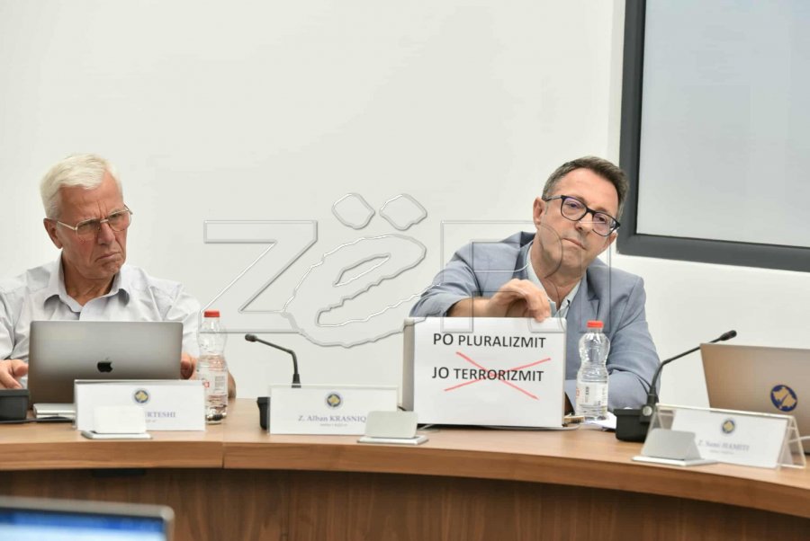 Anëtari i Komisionit Qendror të Zgjedhjeve (KQZ) nga radhët e Lëvizjes Vetëvendosje (LVV), Alban Krasniqi ka vendosur një letër mbi tavolinë me mbishkrimin “Po Pluralizmit, jo Terrorizmit”. Krasniqi këtë...
